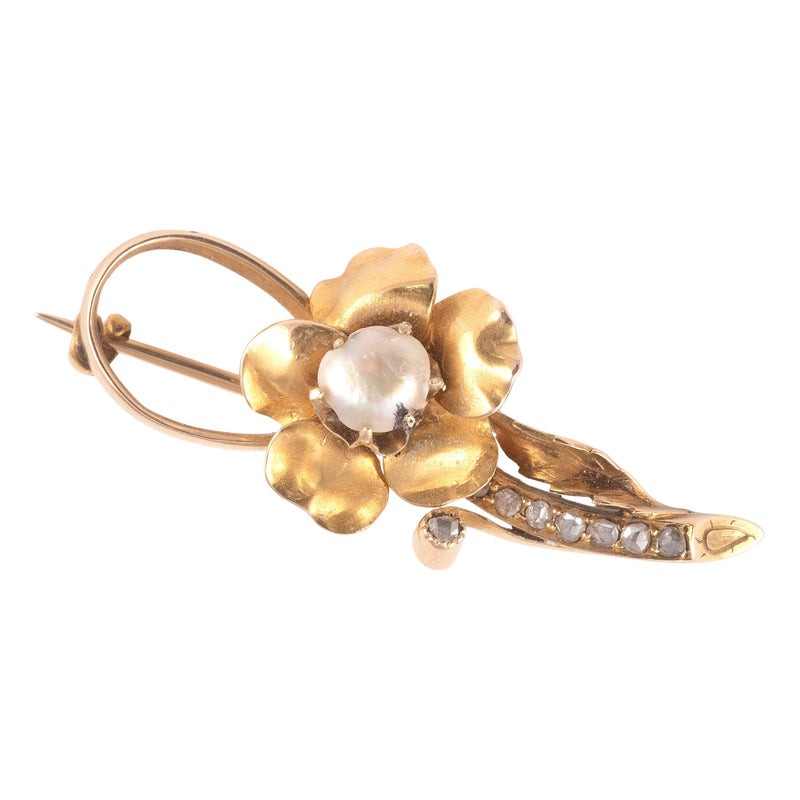 Natural pearl to the centre of the flower head, length 4cm.