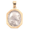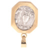 This Ancient Roman silver coin of Emperor Vespasian has been mounted in a stunning modern 18 Karat gold pendant. T. Flavius Vespasianus was born at Falacrina in 9 AD, the son of Flavius Sabinus and Vespasia Polla. Despite his humble origins, his military skills carried him to a series of important posts, and he commanded part of the forces which invaded Britain under Claudius. On July 1, 69 AD the legions at Alexandria proclaimed Vespasian Emperor. The Danubian legions scan followed suit and invaded Italy, defeating the forces of the Emperor Vitellius at the battle of Cremona. Vespasian reached Rome in 70 AD and quickly set about repairing the damages to the State caused by the civil war. Vespasian died on June 24th, 79 AD. Though his origins were humble, Vespasian rose to the throne of Rome through a combination of talent, ambition and luck. A superb strategist and capable statesman. Those qualities that made him a great ruler seem evident even in this small imperial portrait. The individual who wears this splendid piece today is certain to share important traits with Vespasian.