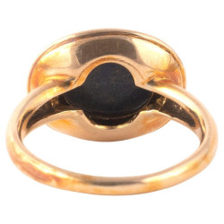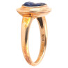 Questo delizioso cammeo romano del II secolo è realizzato in lapislazzuli ed è inserito in una montatura in oro 18 carati contemporanea sebbene riprenda lo stile anticheggiante che veniva adottato al tempo per oggetti di produzione orafa; infatti, la montatura essenziale è contraddistinta solamente da una scanalatura nella parte superiore che incornicia perfettamente il cammeo, contribuendo a esaltare la raffigurazione. Il lapislazzuli, difatti, è impreziosito da una tenera raffigurazione di Cupido bambino, raffigurato di profilo e riconoscibile dalle piccole ali che spuntano dalla sua schiena: egli era figlio di Venere e Marte, nella maggior parte dei casi viene raffigurato nelle sue sembianze infantili e, solo più raramente, da adulto perché spesso associato al gioco e allo scherno, spesso capriccioso ma dio per eccellenza dell’amore.