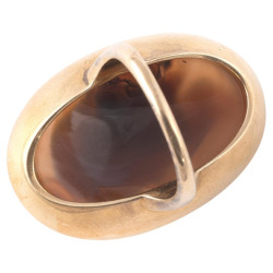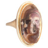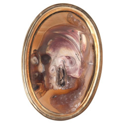 The agate cameo, probably of Italian manufacture and datable to the first half of the nineteenth century, depicts a Memento Mori, literally a Latin phrase that reads "Remember that you must die" which, however macabre it may seem, is actually a phrase dating back to Ancient Rome that invites a reflection on the transience of life, in order not to lose the true meaning of life and live in a more present way, moving away from the mere possession of earthly goods, which are of no use to the afterlife.