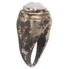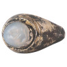 The Roman intaglio, dated between the I and II centuries A.D., depicts the goddess Minerva, as can be seen from the presence of the helmet that identifies her as the goddess of just war and wisdom. The iconography and meaning of Minerva historically derive from the Greek goddess Athena, who in ancient times was also the protector of any form of craftsmanship. In this case, the goddess is depicted in profile on an oval-shaped chalcedony carving, while the silver setting has signs of ancient gold plating.