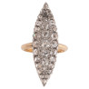 A rare long marquise shaped ring with a pavé of 24 rose-cut diamonds and 7 old-cut diamonds.