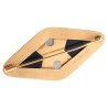 Art deco parure in 18kt yellow gold with geometric design, with onyx and jade. This set consists of a ring, a brooch, and a pair of earrings, and it is signed by René Foy.