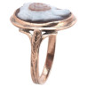 The cameo depicts four conjoined heads that take the name of gryllos, which means the union of two or more heads of human and animal origin, often with mythological associations and with a protective function. In this case, the cameo, datable around the eighteenth century, represents a ram – a symbol of strength and heroism, a satyr – symbol of lascivious and Apollonian pleasures and, finally, a young man and an old man, symbolic representation of time passing.