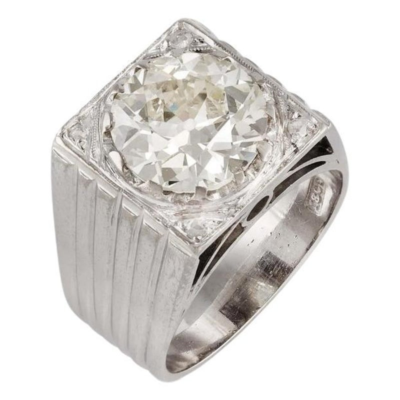 The cocktail ring presents a stunning old-cut diamond of 3.49 ct within square frame, moreover, the setting is in 18kt white gold with four rose diamond.