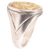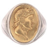 The ring depicts the profile of the famous Roman emperor Gaius Julius Caesar. The setting is in silver and the top is in 18kt yellow gold.