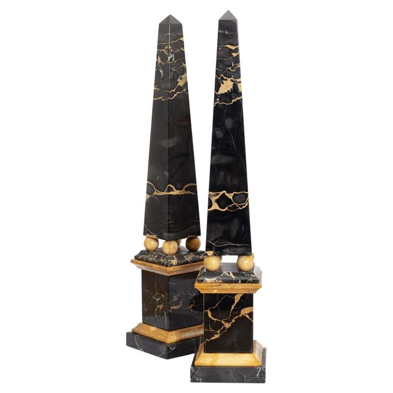 This Louis XV style black marble and giallo di Siena marble. Height 47cm Diameter 10cm