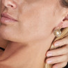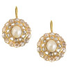 An elegant pair of late 19th century earrings in 18kt yellow gold, embellished in the center with natural pearls of approximately 6 mm surrounded by rose-cut diamonds, with lever clasp.