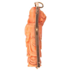 750 thousandths gold pendant holding an engraved coral Shoulao. Gross weight: 7.60 g. Height: 4 cm