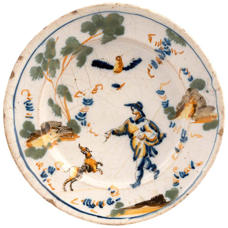 Painted with a bird perched on flowering branches, 21.2cm diam., 'Lodi' and monogram in blue.