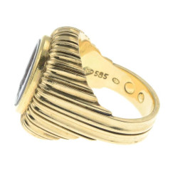 Dutch marks, stamped 585. Ring size 8 . 17gms.Length of ring head 2.3cms.Band with Dutch marks for 14ct gold. Maker's mark AJR. Seal possibly Austrian.